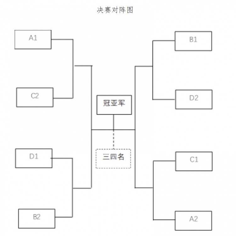 2. 参加三、四名比赛的胜队为第三名,负队为第四名;